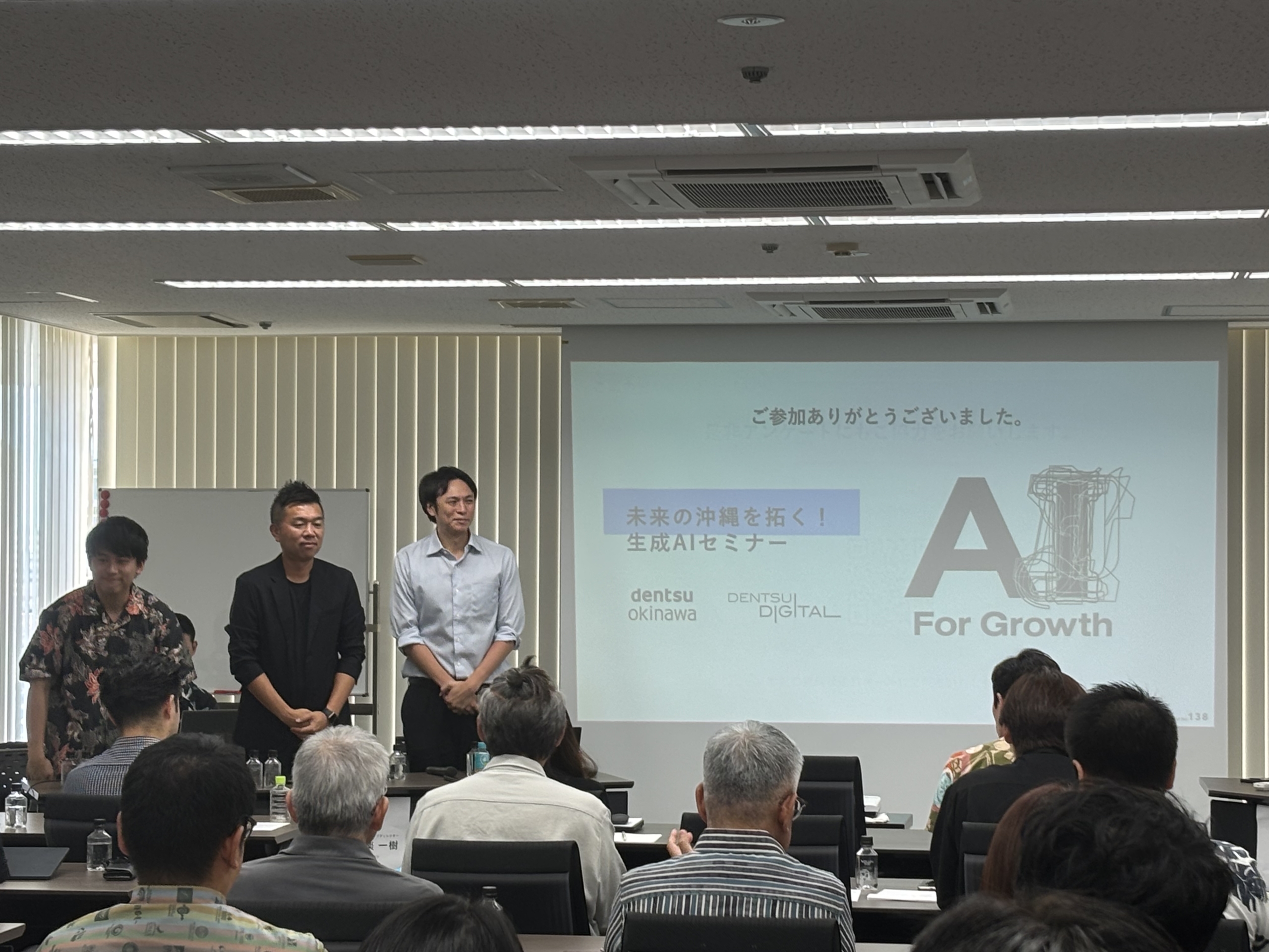 セミナーの締めくくりでは、「AI時代だからこそ、人と人とのつながりが重要」とのメッセージが送られ、電通沖縄が”沖縄”のAI活用支援窓口として伴走する重要性が示されました。今後はテーマ特化型のセミナーも予定しており、沖縄の未来を拓く第一歩となるイベントとなりました。